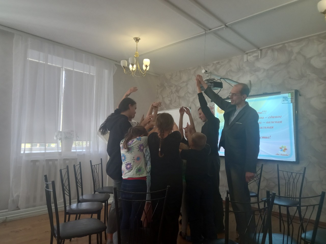 В МКУ «СРЦН» Прокопьевского муниципального округа для воспитанников было проведено тренинговое занятие «Снова вместе». Целью занятия было способствование формированию групповой сплоченности, содействие у детей чувства «Мы», осознание своей роли в коллективе.