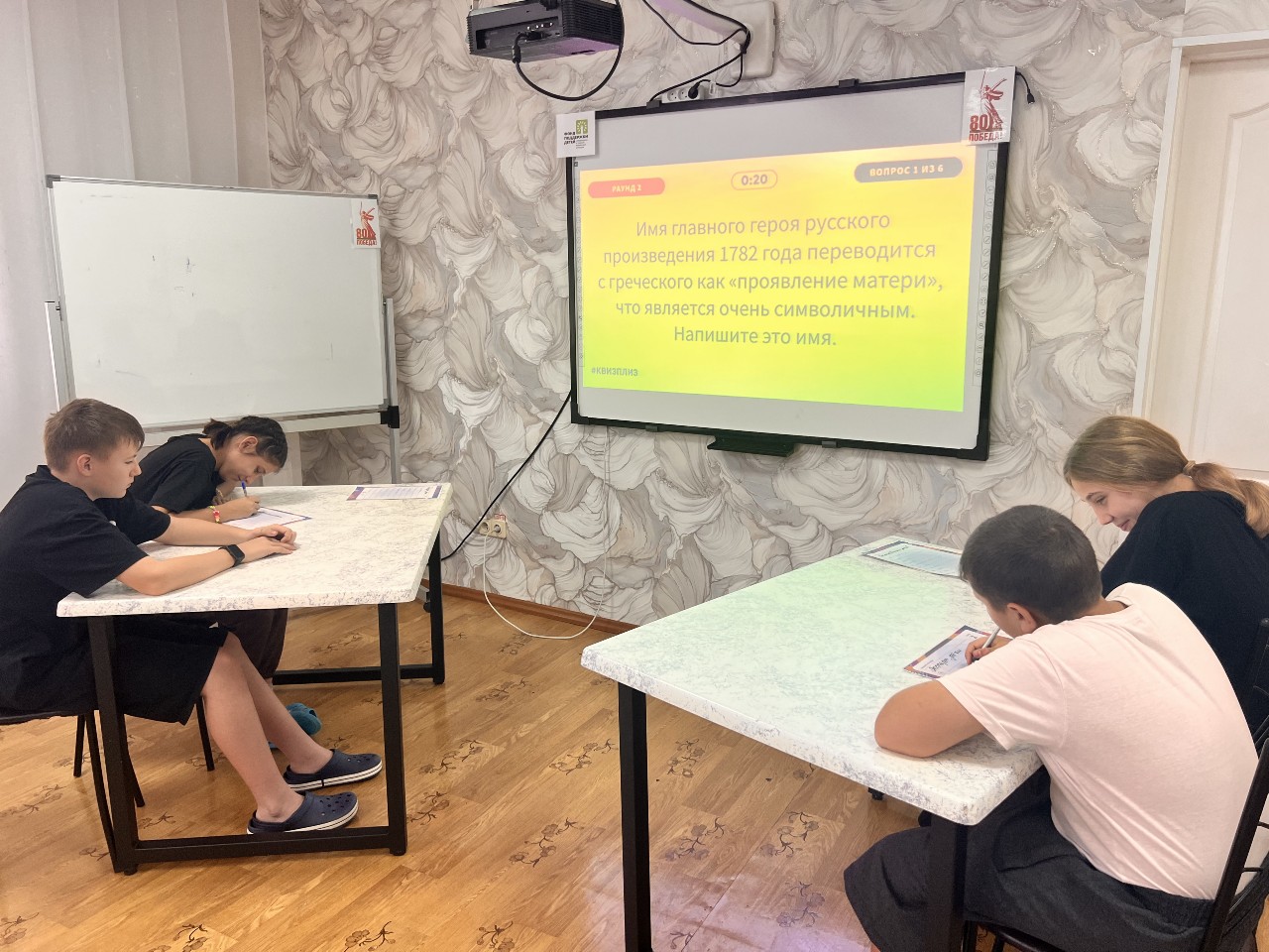 Квиз состоял из 3 раундов, каждый из которых погружал участников в разные аспекты мира классической литературы. Ребята отвечали на вопросы об известных русских и зарубежных писателях, вспоминали сюжеты знаменитых романов и повестей, а также решали задания на сопоставление персонажей с их произведениями. Некоторые вопросы требовали не только знаний, но и логики, вызывая оживленные дискуссии внутри команд.