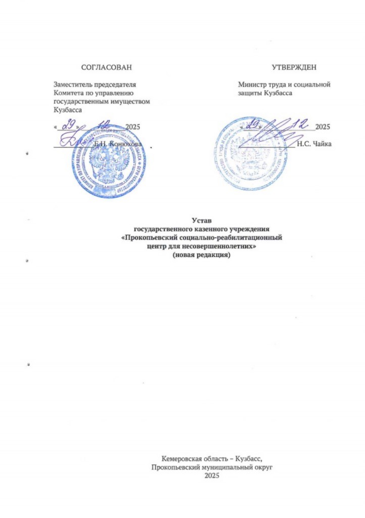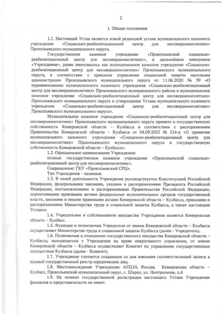 УСТАВ ГКУ «Прокопьевский СРЦ»