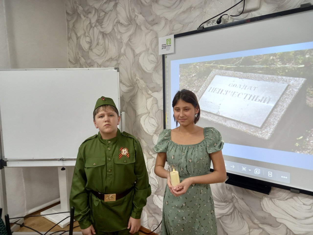 В завершении ребята прочитали стихотворения, послушали песню, посвящённую подвигу Неизвестного Солдата и почтили память героев минутой молчания.