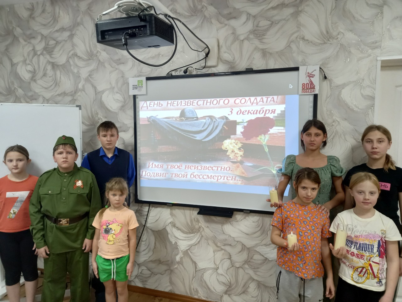 В МКУ «СРЦН» Прокопьевского муниципального округа проведено мероприятие «День Неизвестного Солдата». На этом занятии дети погрузились в историю возникновения этого значимого дня и узнали, почему именно 3 декабря стало символом памяти о воинской доблести. Воспитанники познакомились с трогательными стихами и прозой военных лет, а также с иллюстрациями памятников Неизвестному солдату, расположенных в различных городах России. Мероприятие сопровождалось презентацией, а также фотоматериалами и видео.