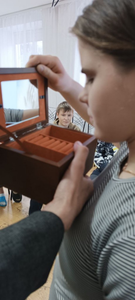 В продолжении занятия о счастье, было выполнено упражнение «Шкатулка». Каждому воспитаннику надо было заглянуть в шкатулку и сказать, что он там увидел. На дне шкатулки лежало зеркало, и каждый увидел свое отражение. Самым дорогим и ценным для каждого из нас это мы сами, и от нас зависит, будем мы счастливы или нет, сделаем ли счастливыми окружающих нас людей.
